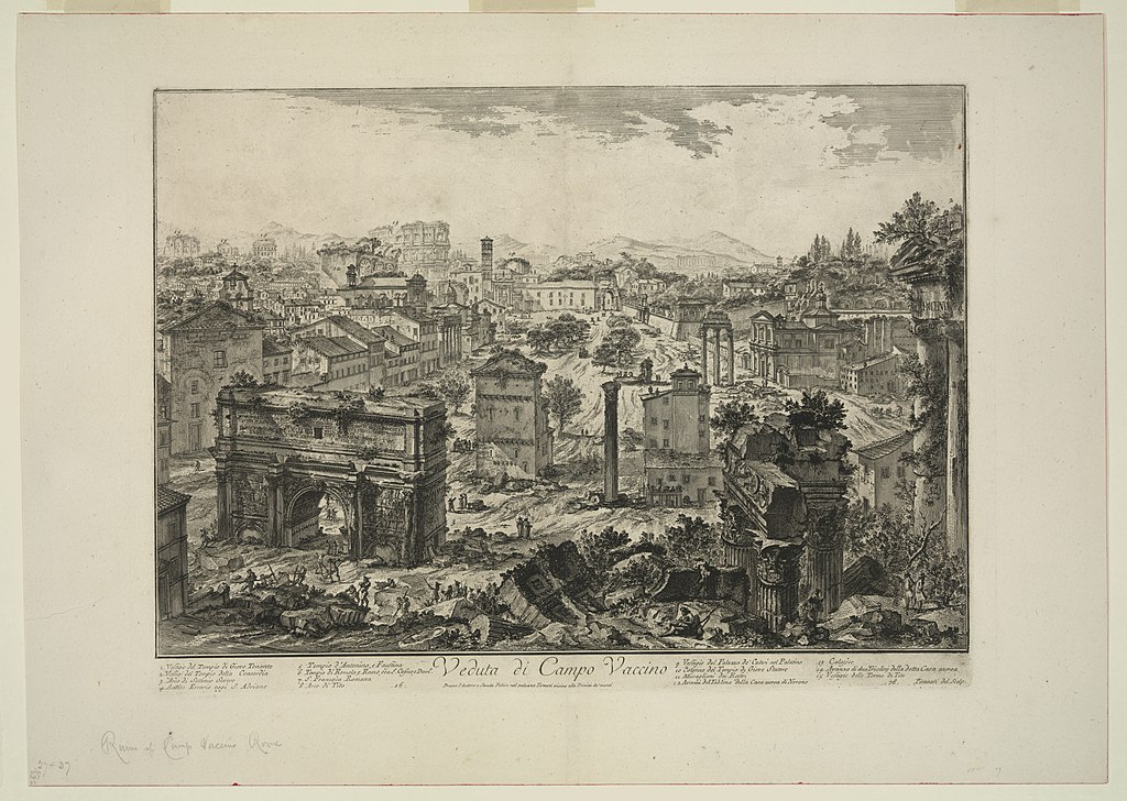 Despite Brunelleschi’s rapture, Rome was in a sorry state when he and Donatello entered through the Porta del Popolo around 1401. This was not the Rome of the Renaissance popes, the new St. Peter’s basilica or the Palazzo Farnese. Popes had in fact resided in Avignon in the south of France from 1309 to 1376. Petrarch, in a letter sent from Avignon in 1334, described the Eternal City as ‘deserted, and a mere shadow of its former self’. The population had plummeted, and those that remained had cocooned themselves into a botch of streets near the Tiber. The Roman Forum, once the heart of Roman civic life, was now dilapidated and largely abandoned, its once busy thoroughfares buried under the soil; the area’s new name, Campo Vaccino, ‘the field of cows’, reflects the extent of the city’s contraction, and how far it had fell. Though we like to think of the Middle Ages as backward and ignorant, it was during this time of neglect that the Forum and its monuments were inadvertently preserved; it is painful to contemplate that the most thorough destruction of the ancient structures in the Forum actually took place when interest in antiquity had revived – during the Renaissance.