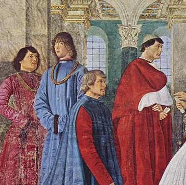 It is highly accomplished work, with bold colours, superbly executed perspective, trompe-l’œil effects and intricate rendering of architectural details. Though they would not have used the term, this is a Renaissance painting of assuredly Renaissance men who were keen to be seen as such, captured by an artist in complete command of fresco, a difficult medium to master. Vasari would surely have approved.