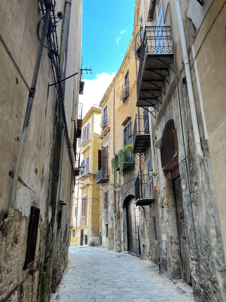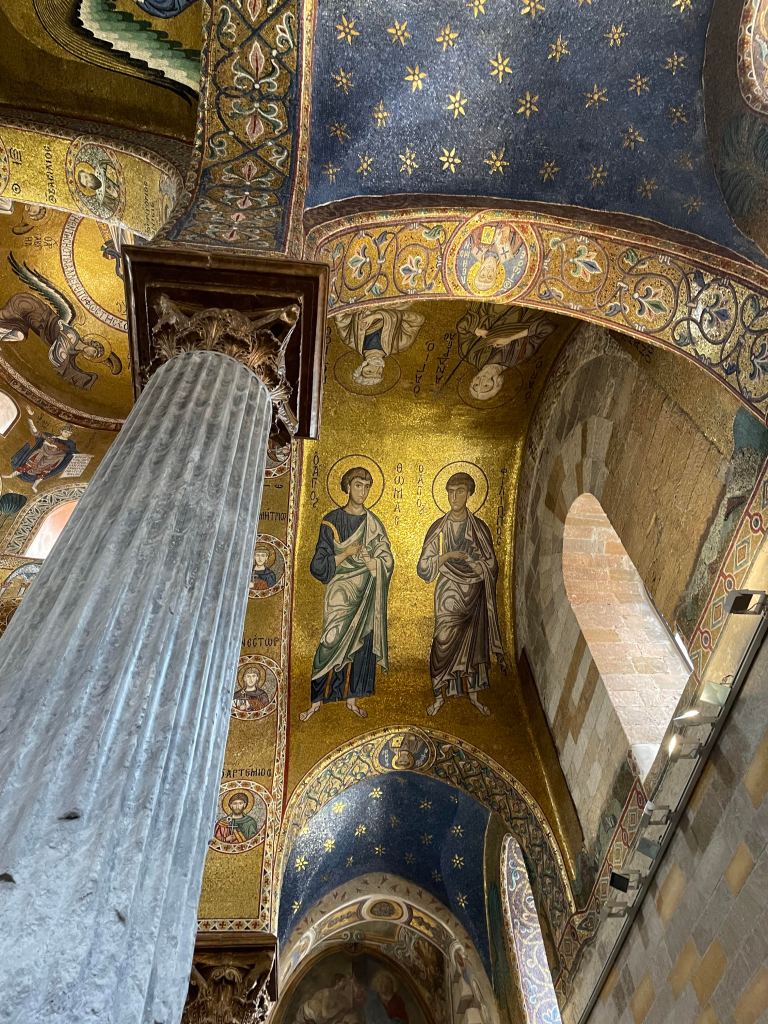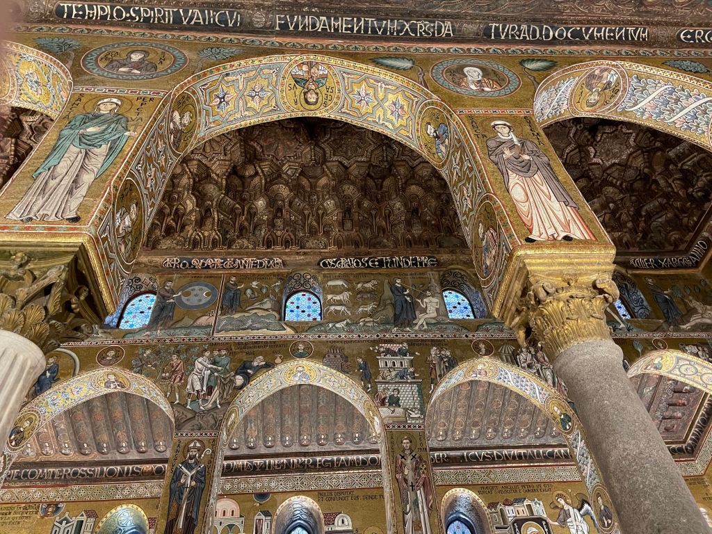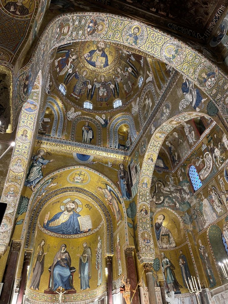 Vicolo Castelnuovo Old letterbox, off via Vittorio Emanuele Hodighitria, 13th century, Galleria Regionale della Sicilia, Palazzo Abatellis San Cataldo, from beneath the tower of the Martorana Grounded, Gilbert & George, 1988, Massimo and Francesca Valsecchi collection, Palazzo Butera Dilapidated property, via Vittorio Emanuele Curriculum Vitae XII, Tom Phillips, Massimo and Francesca Valsecchi collection, Palazzo Butera Cosmati pavement, Cappella Palatina Palazzo Butera Martorana Lamp, Palazzo ButeraHoly Family, Galleria Regionale della Sicilia, Palazzo Abatellis Nave and ceiling, Santa Caterina Giuliano’s gang, No Mafia Memorial, via Vittorio Emanuele